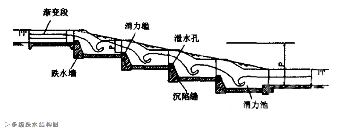 多級(jí)跌水:落差在5米以上時(shí),一般采用多級(jí)跌水。多級(jí)跌水的分級(jí)數(shù)目和各級(jí)落差大小,應(yīng)根據(jù)地形、地基、工程量、建筑材料、施工條件及管理運(yùn)用等綜合比較確定。一般各級(jí)跌水均采用相同的跌差與布置。