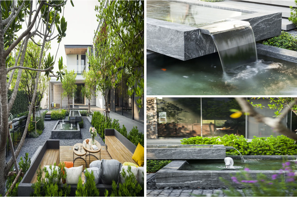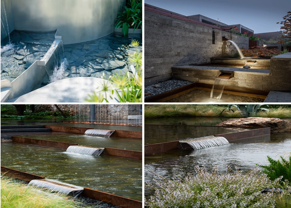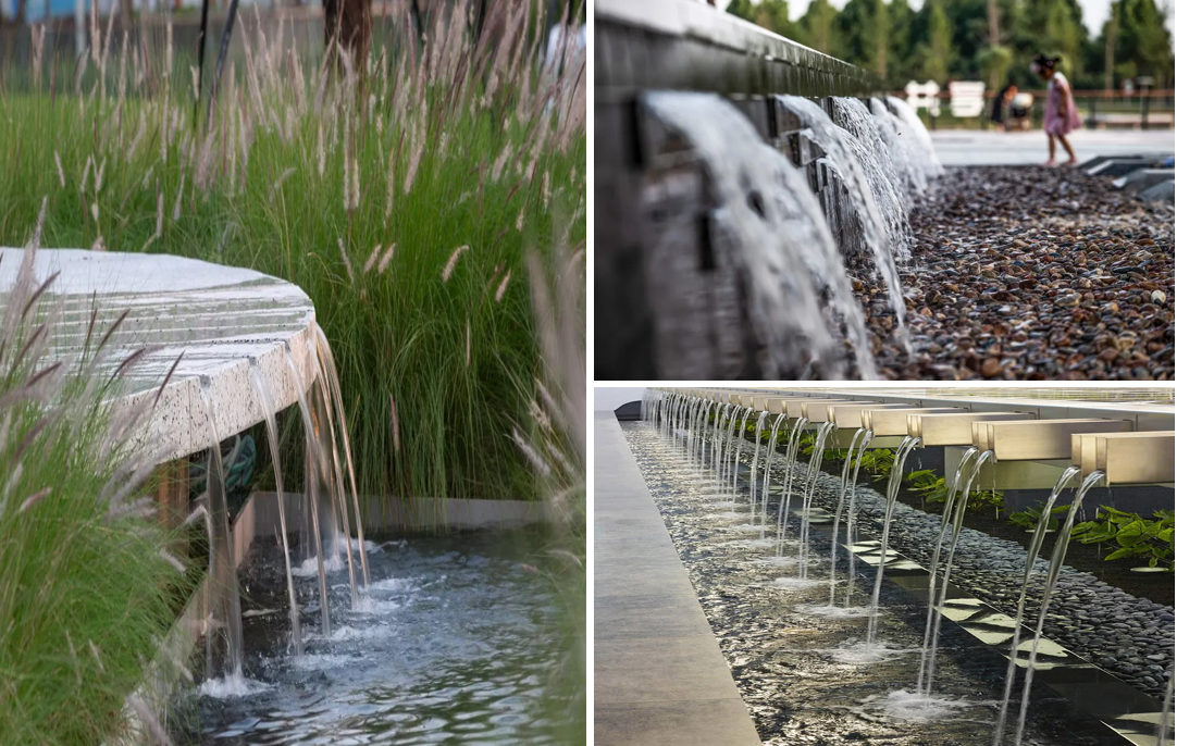 1.隱蔽式:將出水口隱藏在景觀環(huán)境之中,讓水流呈現(xiàn)自然瀑布的形狀。