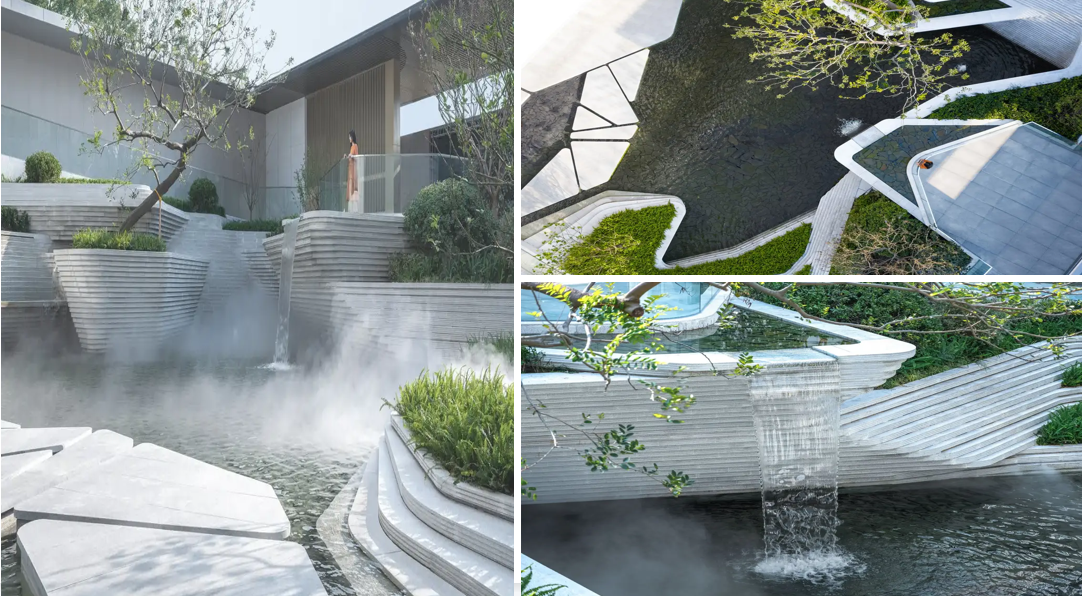 4.多點(diǎn)式:出水口以多點(diǎn)或陣列的方式布局,形成規(guī)模較大的跌水景觀。