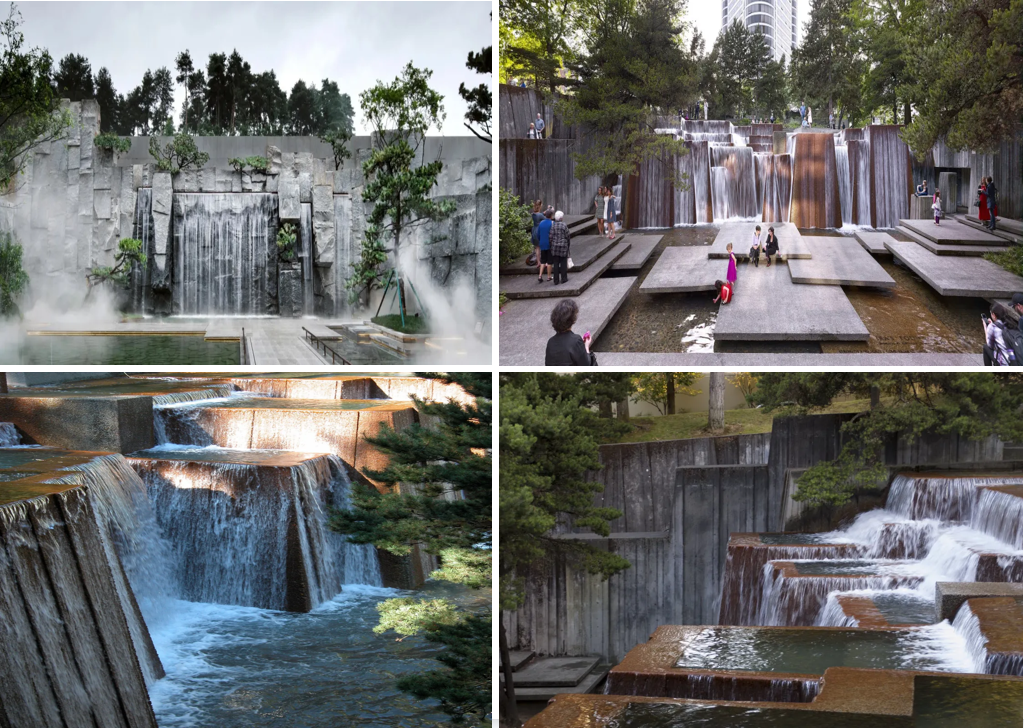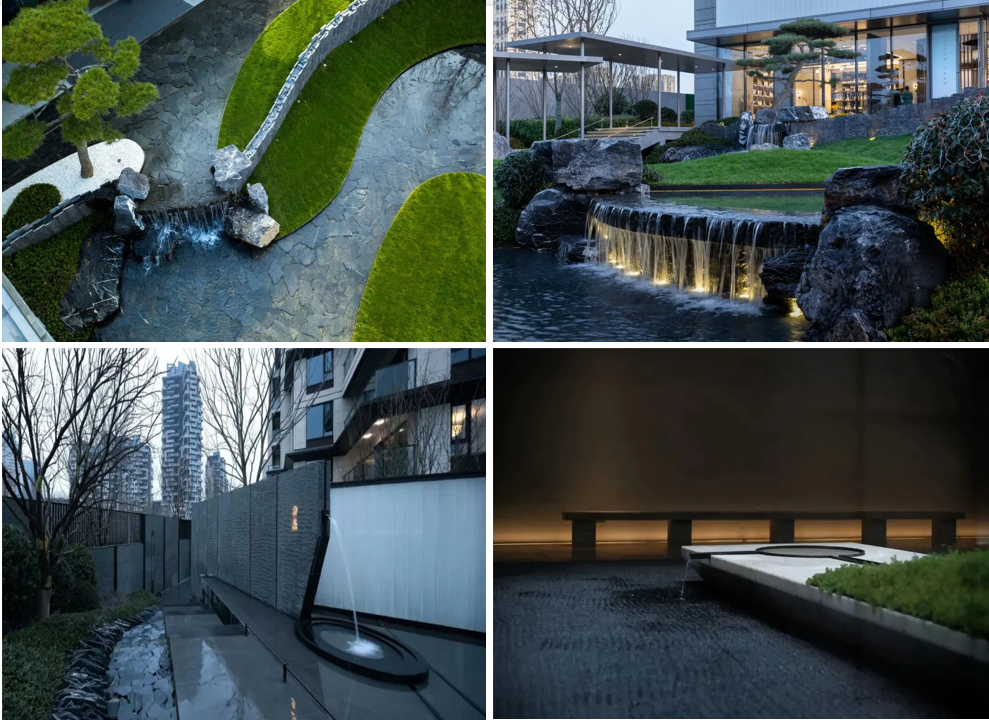 水是景觀中最活躍、最具魅力的造園元素之一,景觀場所因水而生動(dòng),人們希望水能夠陪伴在我們生活的點(diǎn)滴中,水景種類豐富,靜水、噴泉、造型水景、跌水等等,其中跌水應(yīng)用最廣,不僅用以調(diào)節(jié)渠道縱坡,還可用于渠道上的排洪、泄水和退水,功能也是很豐富! 跌水的那種墜落之美,將形式之美與工藝之美結(jié)合,下面就恒易源帶各位觀眾,一起走進(jìn)跌水景觀。