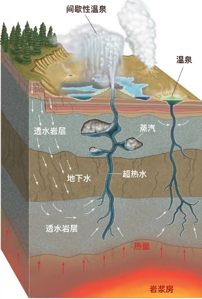 天然溫泉的形成需要特定的地質和地理條件相互作用,以下是其形成的主要條件:1. 熱源(地熱能) 地熱梯度或巖漿活動:地球內部溫度隨深度增加(正常梯度為每百米約3°C),若地下水滲透到足夠深度(通常數千米),會被加熱至高溫。火山活動地區因巖漿房···