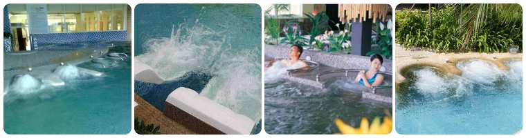 9.涌泉浴:自池底涌出強力的氣水合流之高氧水,創造出水面奔騰之動力,讓人在其上及四邊有遙動之刺激感,屬于較刺激性之休閑娛樂功能,感受刺激并靠附近支撐點將全身做不同姿勢的翻滾,享受超聲波氣泡按摩。不僅能清潔皮膚表面,還可以利用細微的小氣泡全面的深入毛孔深處,將汗腺、皮脂腺里的污垢都乳化掉,再將其清除出去。