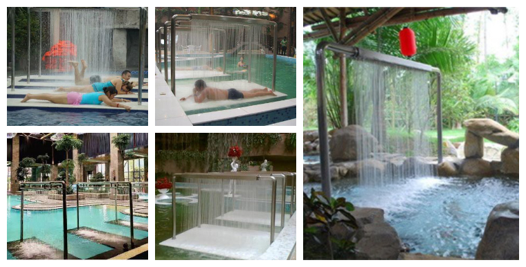 通過大量由上往下的水沖擊、按摩身體部位和穴道,可以按摩到頸部、肩部及腰部、臀部、腿部。