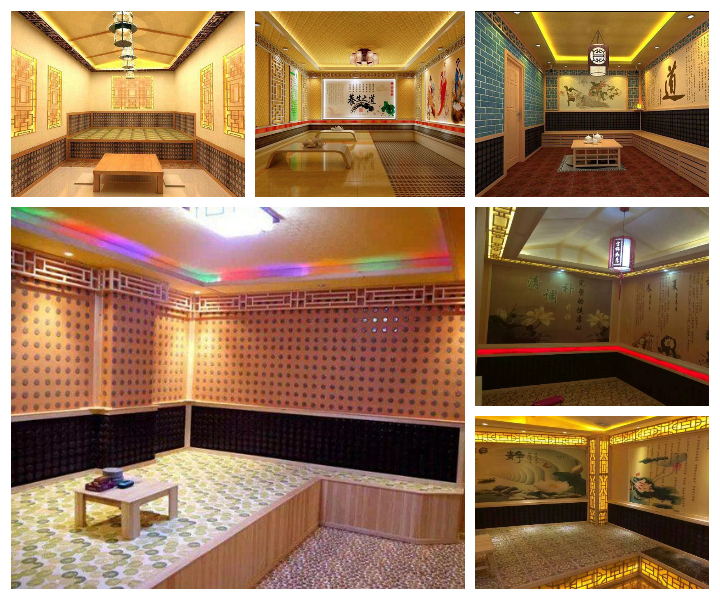 公司有多年的汗蒸房施工和安裝經驗,專業承建砭石能量房、日式巖磐浴養生房、納米汗蒸房、韓式汗蒸房、黃土汗蒸房、窯洞汗蒸房、玉石能量房、鹽晶石汗蒸房等先進的休閑浴房,所承建的蒸房均采用先進的日韓工藝,裝飾精美、品味、豪華、功效性能高。